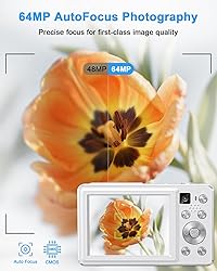 【Stunning 4K Video & 64MP Photos】The digital camera captures smooth 4K videos and vibrant 64MP photos —from weekend trips to family gatherings and the beauty of nature you don’t want to miss. With an advanced CMOS sensor, just point, press, and capture sharp images—no complicated settings required. 【Dual Front & Rear Vlogging Camera】Switch between front and rear cameras with one button to shoot selfies, vlogs, and everyday moments from any angle. Perfect for social media, travel, or fun times with friends—this point-and-shoot camera is ideal for teens, content creators, and anyone who loves documenting life. 【Crisp Shots with Autofocus, Flash & Anti-Shake】The camera for photography features smart autofocus and built-in image stabilization, ensuring every shot is crystal-clear and blur-free. Built-in flash enhances low-light performance, so you can confidently capture portraits, action shots, and fast-moving moments anytime. 【Creative Modes & Easy USB Transfer】Zoom up to 16X for amazing landscapes or wildlife from a distance. Make your videos pop with slow motion or fast-moving scenes with time-lapse. Customize your photos by adjusting white balance, ISO, and filters. Use it as a webcam for video calls, and easily transfer photos and videos to your computer via USB. Lightweight and travel-ready, this small camera is perfect for fun on the go. 【Ready-to-Use Kit & Long-Lasting Batteries】Includes 4K digital camera, 32GB memory card, 2 rechargeable batteries, USB-C cable, storage pouch, lanyard and one year warranty—everything you need to start shooting right away or give as a thoughtful gift. With long-lasting batteries for all-day use and support for recording while charging, you’ll never have to worry about running out of power.