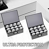 Aokeyee 2-Pack Mug & Cup Storage Box, Hard Shell Storage Container - Holds 24 Coffee Mugs, Teacups & Glasses, Stackable with Lid, Handles, Zippers & Label Slot, for Moving & Protection, Grey