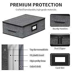 【Professional Dinnerware Protection】Sturdy exterior with quilted linings and soft dividers shields dinnerware from scratches and damage. Premium woven fabric resists dust and moisture, keeping dinnerware clean and ready. Ideal for moving, seasonal storage and cabinet stacking. 【Large-Capacity Mug Storage Box】This set includes 2 mug organizers (12 mugs each), with 4¼"×4¼" compartment dimensions. 【Convenient Design】Sturdy handles enable easy carrying (even when full). Smooth dual-way zippers offer effortless access and longevity. A clear label slot saves time by identifying contents quickly. 【Space-Saving】The stable stackable design maximizes vertical space in kitchen cabinets and closets, tidying cluttered areas. Nest the containers when not in use for compact, space-saving storage. 【Multiple-Scene Use】Sturdy construction works as reliable moving boxes (no extra packing needed). Great for daily/seasonal use and moving, protecting your china.