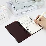 MultiBey A6 6-Ring Acrylic Binder - Clear Durable Binders Notebook Cover with 45 Sheets Blank Refill Papers, Black Metal Round Ring A6 Planner Insert Binder for Journal, Budget, Diary (Brown)