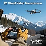 【4K Ultra HD Camera with 8GB Card】Equipped with a high-resolution 4K UHD camera, this drone captures stunning aerial photos and videos with exceptional clarity. An 8GB microSD card is included for immediate storage, with expandable memory support for extended recording. 【5G FPV Transmission & Built-in Display Remote】Experience real-time, low-latency First-Person View (FPV) via advanced 5G transmission. The integrated screen on the controller eliminates the need for a smartphone, ensuring seamless and hassle-free operation. 【GPS-Assisted Navigation & Auto Return Home】Enhanced with GPS positioning for stable hovering and precise flight control. The one-tap Return-to-Home (RTH) function automatically recalls the drone in case of signal loss or low battery, ensuring safety and peace of mind. 【Brushless Motors & 40-Min Flight Time】Powered by high-efficiency brushless motors, this drone delivers smoother, quieter, and more durable performance. Includes 2 rechargeable batteries, providing up to 40 minutes of total flight time for extended aerial exploration. 【Foldable Design & Beginner-Friendly Features】The compact, foldable frame ensures easy portability. Designed for beginners, it offers auto takeoff/landing, altitude hold, follow-me mode, and headless mode, making it ideal for new pilots.