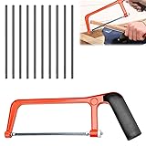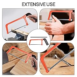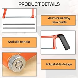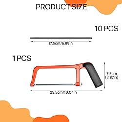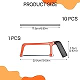 【Durability】: Our saw is Crafted from Aluminum alloy, use for the metal hacksaw boasts superior hardness, ensuring durability and resistance to breakage. Its rust-resistant coating prolongs blade lifespan for prolonged use. 【Ergonomic Design】: The saw suitable for junior hacksaw handle is equipped with a rubber protective cover, which provides you with a comfortable grip to reduce hand fatigue. The anti-slip rubber ensures safety during use, allowing you to cut easily and improve work efficiency. 【Easy to Use】: Our use for hacksaw for metal cutting is lightweight, and the adjustment knob at the base of the handle can tighten and loosen the blade, adjusting the blade angle for more precise cuts. You can also easily replace the blade with a new one if it becomes dull. 【Multiple Uses】: Our metal saw compatible with hacksaw is suitable for cutting various materials, such as plastics, PVC pipes, ceramic tiles, metals, etc. It is very suitable for novices or professionals to perform various cutting tasks indoors or at home. 【Product Packing】: You will receive 1PCS hand saw and 10PCS replacement blades, enough quantity to meet your daily use requirements. The hand saw is very suitable for construction, home decoration, wood, and handicraft processing.