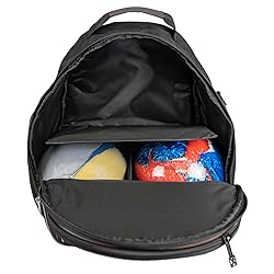 Holds two bowling balls plus one pair of up to size 15 shoes and accessories Multiple enclosed accessory pockets on sides and front Foam padded ball insert to hold balls in place Heavy duty grab handle Adjustable shoulder straps