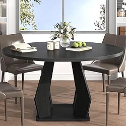 IBF Black Round Dining Table for 4-6, 47 Inch Kitchen Table with Spacious Tabletop Modern Circle Dining Table, Wood Dinner Table Pedestal Base for Dining Room, Kitchen,Living Room,Office