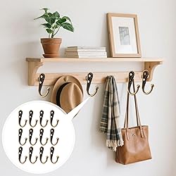 - Specifications: 1. Name: No Rust Antique Bronze Coat Hooks 12 Pack Utility Hanging Hooks Wall Mounted Metal Hanger Hook with 24 Pieces Screws for Clothes, Towel, Key, Purse, Robe, Scarf, Bag, Cap, Coffee Cup, Mugs, Pet leashes. 2. Color: Antique Bronze 3. Material: Zinc Alloy 4. Size: 44 x 12 mm (1.73 x 0.47 in) (L x W). 5. Application: Wall hooks designed for various spaces: bathroom, bedroom, kitchen, closet, foyer, and entryway. Package includes: 12 Pcs Antique Bronze Hooks 24 Pcs Screws 1 Clear Plastic Storage Box Note: 1. This product contains small parts. Not suitable for children, please keep out of reach of children. 2. Manual measurement, please allow slight errors on size. 3. The color may exist a slight difference due to different screen displays. 4. If you have any questions, please do not hesitate to contact us.