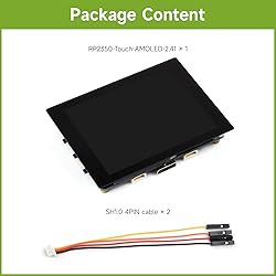 High-Performance MCU: The RP2350-Touch-AMOLED-2.41 is equipped with a powerful RP2350B microcontroller, featuring a dual-core design with ARM Cortex-M33 or RISC-V processors, running at speeds up to 150 MHz. It offers 520KB SRAM, 16MB Flash, and 2MB PSRAM for efficient processing and storage. Integrated AMOLED Touch Display: It features a 2.41-inch AMOLED capacitive touch display with a resolution of 450×600 pixels and 16.7 million colors, providing clear and vibrant visuals. The display uses an RM690B0 driver and FT6336 touch chip, supporting QSPI and I2C communication. Rich Peripherals & Sensors: The board is packed with useful features, including a built-in RTC chip, a 6-axis sensor (3-axis accelerometer and 3-axis gyroscope), and a lithium battery recharge/discharge header for mobile applications, making it perfect for portable and sensor-based projects. Flexible Connectivity and Programming: It supports multiple communication interfaces like USB 1.1, I2C, UART, PWM, and ADC, with 21 multi-function GPIO pins for maximum flexibility. It also features drag-and-drop programming over USB, making development easy and accessible. Low Power and Efficient Design: The RP2350-Touch-AMOLED-2.41 includes low-power modes such as sleep and dormant states, enabling long-lasting performance in battery-powered applications. It also has on-chip accurate clocking, temperature sensors, and floating-point libraries for enhanced precision and performance. Rich WiKi Resources: We provide official Wiki resources, please visit our store and click the wiki page to get resources.
