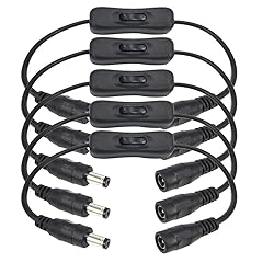 Gebildet 5pcs 12V LED Strip Light Inline On/Off Switch Cable DC Jack (5.5x2.1mm) Male to Female Connector(Black)