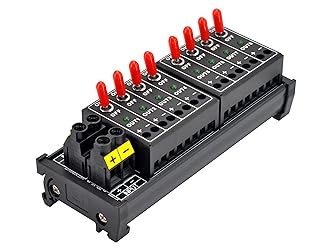 - 1, Working voltage DC 3 to 32V. Maximum input current 30 Amps. 8 Channels output, each channel maximum output current 5 Amps (all channel total maximum output 30 Amps). 2, Toggle switch ON/OFF power output for each channel. With switch power ON LED indication function. 3, Input terminals: pitch 7.62mm/0.3", rated current 30 Amps for per position, wire size 26-10AWG / 4.0mm square, stripping length 8mm, Metric M3 slotted screw. Support power supply expansion connect to other modules. 4, Output terminals: pitch 5.0mm/0.197", rated current 5 Amps for per channel, wire size 26-12AWG / 2.5mm square, stripping length 7mm, Metric M3 slotted screw. 5, High quality fireproof nylon material DIN rail mount carrier, can support width 35mm rail. Aluminum top cover. 6, UL CE certified DIN rail mount carrier. UL 94-V0 certified FR-4 fiberglass PCB. UL CE CQC certified terminal blocks. 7, Operating Temperature: -20 to 60 degrees Celsius.
