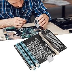 [Quick Fault Detection] The graphics card tester can quickly identify issues like no display, blurry display, and unstable display without the need for individual measurements, making it an essential tool for graphics card repairs. [Efficient Diagnostic Tool] Specifically designed to test data bus connections for open circuits and short circuits, helping technicians troubleshoot and pinpoint underlying problems accurately and efficiently. [Comprehensive Troubleshooting] Allows technicians to inspect burn marks, broken pcb traces, and abnormal voltages before conducting further tests for thorough troubleshooting and repair. [Easy to Use] Simple setup process involving inserting the faulty card, applying a 12v power supply, and pressing the push buttons switch, with indicator lights providing clear feedback for quick and accurate fault diagnosis. [Quick Feedback] The graphics card tester with light's indicator lights offers quick feedback on the condition of the graphics card, helping technicians pinpoint issues with the main cpu chip and accurately locate fault points for thorough troubleshooting.