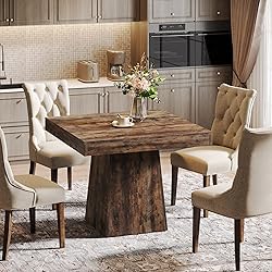 - Tribesigns Square Dining Table for 4, 31.5-Inch Small Kitchen Table with Sturdy Pedestal Base, Farmhouse Dinner Table for Dining Room, Living Room, Kitchen (Vintage Brown)