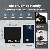 - The MHW-3BOMBER Super Mini Espresso Scale packs precision and portability into an ultra-slim 0.67 inch body that fits under most espresso machines. With 0.1g accuracy, it ensures every gram counts for espresso or pour-over perfection. Choose from Manual, Espresso, or Brewing modes—including auto-timing via liquid detection. A mute function lets you brew quietly, while the included protective bag and lanyard make it ideal for outdoor use. Compact, smart, and easy to carry, it's the go-to scale for serious barista and coffee lovers.