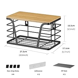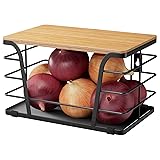 TIDIIABODE Pantry Organizers and Storage - Stackable Wire Basket with Lightweight PP Mat & Bamboo Top for Fruits Vegetables,Fruit Holder for Kitchen Countertop,Black
