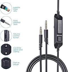 - Replacement Astro A50 Cable Cord with Inline Mute/MIC/Volume Control Compatible with A10/A40TR A50 Gaming Headsets Inline Mute: Mute function: Push for Mute function Mute on: (See the red mark) Mute off: (Cover the red mark) Mode A: Mic for headset Mode B: Mic for Cable Volume Control: Wheel Switch for Volume Control Pause/Switch: Press one time for Pause Qucikly press twice for Next Songs Stronger and more durable 2*3.5mm Golden Plated Audio Jack Oxygen-free copper and gold plated connectors More durable than ordinary cable How to use One 5 pole Audio Jack Connect Headset One 4 pole Audio jack conneck Audio Devices Package Included: 1 x cable; 12-months warranty