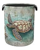 Retro Map Turtle Large Clothes Hamper Bag - Laundry Basket with Handles, Space Saving Foldable Design for Nursery