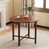 【Wide Round Tabletop】This dining table features a 36" generous round tabletop, offering ample space for eating, working and displaying. Besides, the smooth table surface is wear-resistant and easy to clean, which saves you lots of time and energy. 【Quick Folding Design】Designed with convenience in mind, this table's quick folding mechanism allows for easy storage in narrow spaces or the ability to use it as a console table. Simply fold the legs and flip the tabletop to transform your space in seconds. 【Suitable for Various Scenarios】This round farmhouse table comes with rustic walnut finish and natural appeal, creating a warm and inviting atmosphere in any room. It adapts to a variety of settings and is perfect for living rooms, dining rooms, and restaurants. 【Stable & Sturdy Frame】Constructed with solid rubber wood legs and reinforced with a stable X-shaped structure, this foldable table promises durability and stability. The adjustable foot pads provide extra stability, ensuring the table remains steady on uneven road surfaces. 【Easy Assembly & Dimensions】The tabletop and supporting legs are pre-assembled, which saves your time and energy to set up this table. The overall dimensions are 36" x 36" x 30"(L x W x H), making it the ideal size for accommodating 2-4 people comfortably.