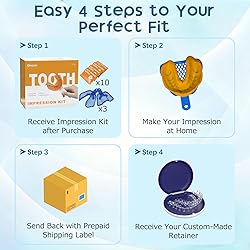 Easy At-Home Process: Simple step-by-step instructions guide you through the process without the need for any pricey appointments. Comfortable Custom Fit: Each retainer is made to match your teeth for a snug, secure, and comfortable feel. Flexible Options: Choose between 1.0mm or 1.5mm thickness. You can request two uppers, two lowers, or one of each—just let us know on the form. Lab-Grade Quality: Made from strong, safe materials by dental experts for long-lasting use. Save More, Smile More: Dental-level quality at a fraction of the price. Great as your first retainer or a backup set.