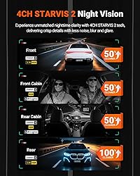 [ 4 Channel 360° Wide Angle Recording ] Powered by a dual-core processor, N5S integrates 4 wide-angle cameras to deliver full 360° coverage, eliminating blind spots both on the road and inside your vehicle. This dashcam captures every detail in stunning clarity with resolutions of 2.7K+1080P+1080P+1440P, while offering flexible recording modes (1CH/2CH/3CH/4CH) to suit diverse needs. From security to legal protection, this 4-in-one dash camera makes driving safety effortless. [ Ultimate 4CH STARVIS 2 Night Vision ] All 4 cameras utilize STARVIS 2 technology, providing exceptional low light performance and noise suppression to clearly capture high-speed details like license plates under challenging conditions. The embedded HDR/WDR processing maintains optimal dynamic range for exposure balance across all lighting environments. Front cabin and rear cabin cameras with infrared lights ensure every details inside your vehicle clearly captured even in complete darkness. [ Next-gen 2.5K Rear Camera ] Combined with a premium IMX675 sensor and HDR processing, the 2.5K rear camera records 1.5X clearer footage than 1080P, providing critical evidentiary video against rear-end collisions. Enhanced by IMX662 sensor, the optimized-exclusive rear cabin camera features higher light sensitivity and clearly captures the complete area of your trunk, back seat and side windows to help you monitor the kids or pets sit in back seat and the luggages in the trunk. [ 5GHz WiFi & GPS & OTA Upgrade ] Featuring 5G WiFi and dual-system GPS, this 4 lens dash cam offers 4x faster data transfer speed and enhanced positioning accuracy. Seamlessly adjust settings, preview/edit videos, share online, and track location, live speed in KM/H or MPH and route via free Vantrue APP. Generate mileage analysis reports with one click—key evidence for road incidents. OTA upgrade lets you update firmware directly through the app, ensuring effortless efficiency. [ 24/7 Buffered Parking Mode ] The N5S auto switches to parking mode after ignition off, recording any suspicious motion or collision around your parked vehicle to provide crucial evidence in case of vandalism, scratches or break-ins. With 10s pre-recording buffered motion detection, this 4 way dash cam captures complete events in full detail. Quick start collision detection ensures timely evidence collection. Must be hardwired.