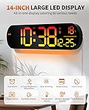 GLOKUUCA 14" Large Digital Wall Mount Clock, Count Down Timer, Alarm, Big LED, 11 RGB Color, Temperature for Living Room Classroom Desk, Xmas, Birthday Gift for Senior Mom Dad (Oval)