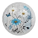 YUJNGFDFFR 4 Pack Round Drawer Knobs Daisy Butterfly Blue White Cabinet Knobs Round Dresser Drawer Pulls Handle Kitchen Cabinet Hardware with Screws 1.37" Cupboard Pulls for Closet Door Wardrobe