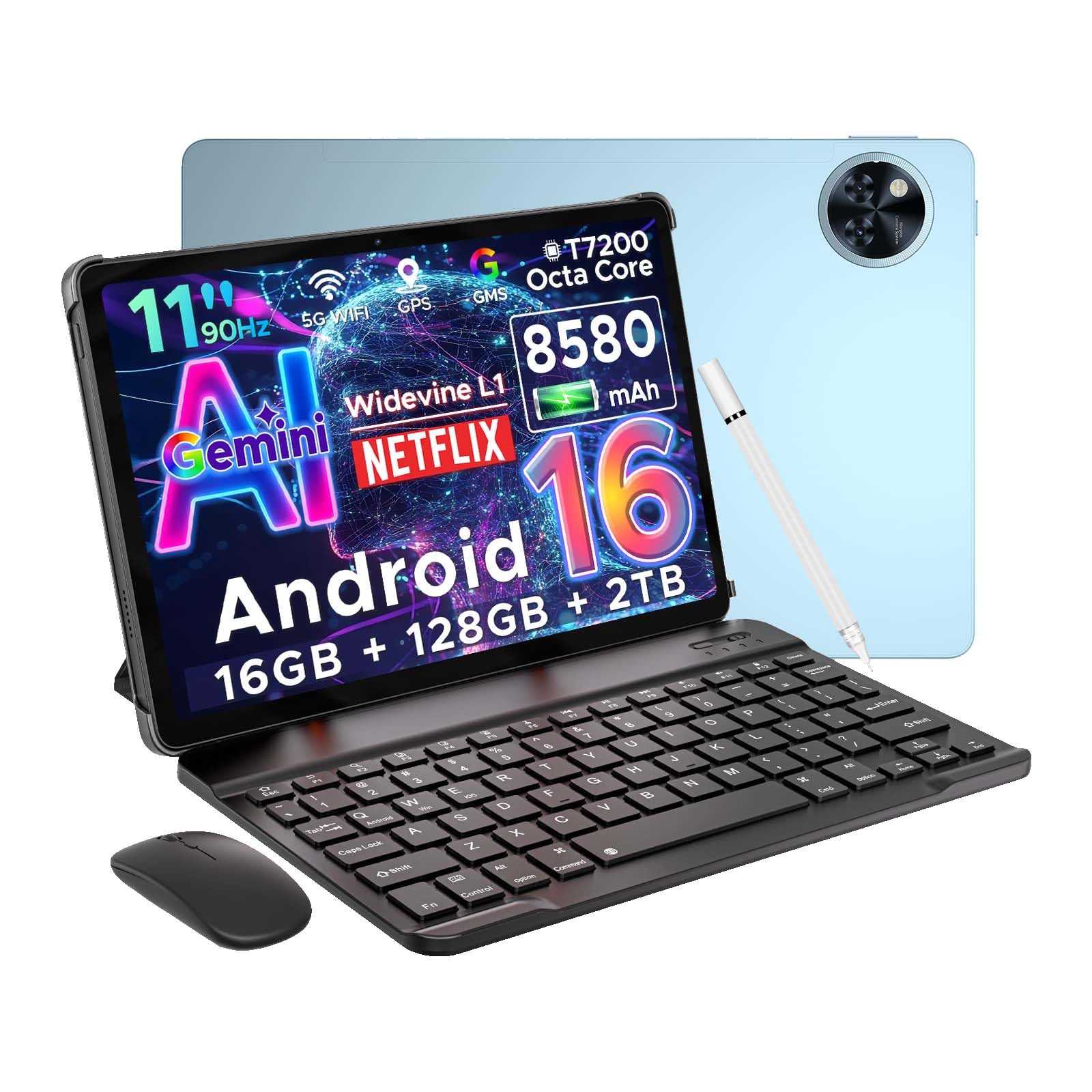 DOOGEE U11 Pro Android 16 Tablet, 11 inch Tablet with Gemini AI,30GB+256GB/2TB TF Octa-Core,90Hz Display, 8580mAh,1080P, Bluetooth 5.0+5G WiFi,Widevine L1,13MP+5MP, Face ID/OTG