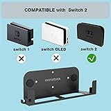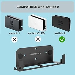 SPACE-SAVING DESIGN: Left-side TV mount for Switch 2 dock maximizes entertainment space while keeping your gaming setup clean and organized.NOT COMPATIBLE with Nintendo Switch 1 or Switch OLED. PREMIUM CONSTRUCTION: Durable metal build with matte coating provides scratch resistance and elegant aesthetics to complement modern setups SECURE MOUNTING: Perfectly contoured bracket ensures your Switch 2 dock stays firmly in place, preventing accidental drops or slips CABLE MANAGEMENT: Strategic left-side positioning helps maintain tidy cable organization behind your TV setup EASY INSTALLATION: Complete wall mounting kit includes all necessary hardware and features a convenient controller strap hook for added organization