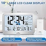 - Atomic Clock, 10" Digital Clock Large Display, Wall Clocks Battery Operated with Backlight, Wireless Outdoor Sensor, Alarm Clock Indoor Outdoor Temp, 4 Time Zones, Auto DST, Clock for Bedroom (Sliver)