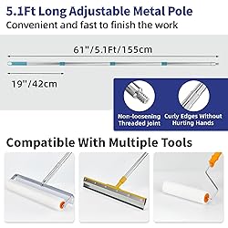 - Craft flawless, non-bubble surfaces with our premium self-leveling cement tool kit—engineered for professionals and DIY enthusiasts alike. Constructed from high-grade stainless steel (including 304 stainless steel scrapers) and rugged PE materials, every component resists corrosion, oxidation, and wear, ensuring years of reliable indoor/outdoor use. Experience unmatched efficiency: dual spiked rollers (20” and 9”) instantly eliminate air bubbles for glass-smooth epoxy or cement floors, while the 22” leveling rake’s teeth make sure consistent thickness—no uneven patches or material waste. The innovative threaded 20” roller head and angle-adjustable scraper (with high-strength plastic joints) enable seamless integration with telescopic extension rods (extending to 80”), adapting effortlessly to any height or distance. Assemble in minutes—no expertise needed! Clearly labeled, unassembled parts click together intuitively, and the anti-slip/anti-rotation teeth design allows quick disassembly for cleaning. Beyond floor leveling, maximize versatility: use spiked shoes for plastic runways or lawn aeration, and leverage paint rollers (included) for epoxy coating. We prioritize your safety and comfort: non-marking spike shoes glide without damaging surfaces, while non-slip gloves protect during extended projects. Every detail—from the splash-proof metal roller guard to the sturdy stainless steel rods—is upgraded for peak performance.