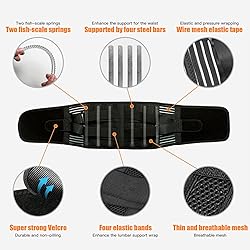【Pain Relief & Posture Correction】Supports and stabilizes your lower back to alleviate discomfort and gradually retrain your spine for better alignment 【360° Reinforced Support】With the 4 steel plate supports+ 2 flexible steel springs and an extra lumbar pad-deliver rock-solid stabilization during daily tasks, weightlifting, or gym workouts. 【Ergonomic Unisex Fit】There are elastic and adjustable straps contour to both men’s and women’s bodies for a secure,so easily adjusts the tightness depending on how much support you need. custom fit without slipping or pinching 【Breathable 3D Knitted Fabric】 Lightweight, moisture‑wicking material keeps you cool and dry all day, fitting discreetly under clothing 【Size Guide】 Small (Your Waist: 22.31"- 32.81") / Medium (Your Waist: 28.87" - 35.43") / Large (Your Waist: 34.12" - 39.37") / X-Large (Your Waist: 38.06" - 43.31") / XX-Large (Your Waist: 41.99" - 48.56") / NOTE :Measure waist at the level of navel (belly button). Do not assume you know your size. Do not select by pants size.