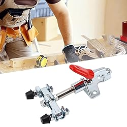 [Easy Installation] Consists of base plate with 3 mounting holes and adjustable tips. nut adjustment for different clamping distances. [Stable Clamping Force] Double head design reduces processing time, increasing work efficiency for various parts. [Versatile Applications] Offers 45kg clamping force, 190° handle opening angle, and 16.7mm stroke, ideal for various woodworking tasks. [Durable Material] Made of excellent metal with galvanized coating for erosion resistance. sturdy handle for fixture installation. [Compact and Sturdy Construction] Features iron build with high hardness for strong clamping force. the red pvc handle is non-slip and wear-resistance.