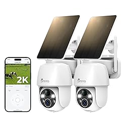CAMSTRO 2PCS Solar Security Camera Wireless Outdoor, 2K Battery-Powered Camera for Home Security, PIR/AI Motion Detection, 360°PTZ, Color Night Vision, Two-Way Audio,IP66, Alexa/Google,2.4Ghz Only