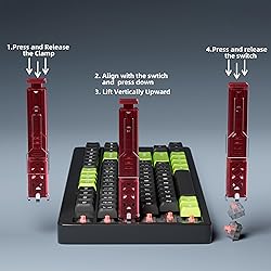 𝐃𝐔𝐑𝐀𝐁𝐋𝐄 & 𝐑𝐄𝐋𝐈𝐀𝐁𝐋𝐄 𝐌𝐀𝐓𝐄𝐑𝐈𝐀𝐋𝐒: Crafted from super quality stainless steel and Plastic, the 2 in 1 switch keycap puller tool set delivers excellent resistance against rust and corrosion,durability, and corrosion protection, ensuring long-lasting performance for keyboard enthusiasts. 𝐍𝐎 𝐌𝐎𝐑𝐄 𝐅𝐈𝐍𝐆𝐄𝐑 𝐏𝐀𝐈𝐍!:Our semi-automatic switch puller allows easy alignment and effortless removal of switches, eliminating the need to grip metal clamps, making customization and routine cleaning a breeze. 𝐏𝐄𝐑𝐅𝐄𝐂𝐓 𝐅𝐎𝐑 𝐇𝐎𝐓-𝐒𝐖𝐀𝐏𝐏𝐀𝐁𝐋𝐄 𝐊𝐄𝐘𝐁𝐎𝐀𝐑𝐃𝐒:The keycap remover is designed for versatile use, easily adjustable for keycap sizes from 1U to 6.25U and longer, ensuring fast, safe, and hassle-free keycap removal with minimal effort. Compatible with Gateron, Akko, CHERRY MX, Kailh, EPOMAKER, AULA, Glorious, Razer, WS POM, OUTEMU (Gaote), and other switches with similar latch mechanisms, it works with 99% of hot-swappable keyboards. 𝐓𝐈𝐌𝐄-𝐒𝐀𝐕𝐈𝐍𝐆 & 𝐄ffortless: With the 2-in-1 Switch&Keycap Puller, removing and replacing switches and keycaps becomes a breeze. The ergonomic design and precise construction of this tool ensure a secure grip on the switch or keycap. Spend less time on tedious switch removal. It speeds up your process, saving 15-20 minutes during keyboard cleaning or customization compared to Ordinary pullers. 𝐂onvenient and 𝐏ortable:With its compact size and lightweight design, the 2-in-1 Switch & Keycap Puller is convenient to carry around. Whether you are at home, workout, indoor or outdoor, this tool ensures that you have the necessary means to customize or repair your mechanical keyboard anytime, anywhere.