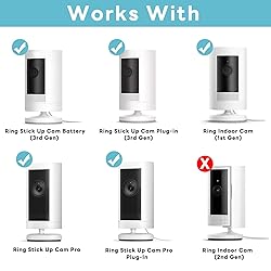 - Upgrade Your Home Security with the Ultimate Ring Camera Mounting Solution! Tired of limited viewing angles or damaging your walls with complex installations? Our versatile 2-Pack Ring Camera Mounts provide the secure, flexible, and hassle-free foundation your security cameras need. Designed for Peak Performance: Universal 1/4" Screw Fit:** Works seamlessly with Ring Stick Up Cam (all gens), Ring Outdoor Cam Plus, and a wide range of popular brands like Arlo Outdoor, Roelink Argus, and more. (Note: Not compatible with Ring Indoor Cam (2nd Gen)). Rock-Solid Stability:** Crafted from corrosion-resistant zinc alloy and stainless steel, these mounts withstand harsh outdoor elements - rain, snow, UV exposure, and temperature swings - ensuring your cameras stay firmly in place. Precision Viewing Control: Achieve the perfect field of view with effortless 360° horizontal rotation and 90° vertical tilt. Easily cover blind spots in corners, monitor wide driveways, or adjust for optimal indoor coverage. Simple, Damage-Free Setup (Choose Your Method!): 3M Adhesive Power (Included): For a truly tool-free install on smooth, non-porous surfaces like glass, tile, painted metal, or vinyl siding. Holds strong! Screws & Anchors (Included):For maximum permanence on brick, stucco, wood siding, or textured walls. Everything you need is in the box. Why Choose This 2-Pack? Cost-Effective Security: Protect multiple entry points (front door, back yard, garage) or different levels of your home without buying mounts individually. Complete Kits: Each mount comes with its own full set of installation hardware (screws, anchors, pre-applied adhesive tape), ready to use right out of the box. Peace of Mind Guarantee: We stand behind the durability and performance of our mounts. Backed by a 3-year warranty. Maximize your camera's potential. Order your set of Heavy-Duty Ring Camera Mounts today!
