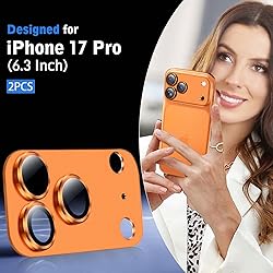 SiHPuoy 2 Pack Camera Lens Protector for iPhone 17 Pro Accessories, Metal Aluminum Alloy Tempered Glass Camera Protector, [Military Grade Shatterproof] [Case Friendly] -Orange