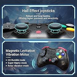 Multi-Platform- Seamlessly compatible with Switch/Switch 2/OLED, Steam Deck, ROG Ally, Windows PC, Android, and iOS devices. 1000Hz wired polling rate for PC-Windows and 170Hz Bluetooth for Switch. Hall Effect Joysticks - Equipped with premium Hall-effect sensors, these joysticks optimize the frustrating drift common in traditional analog sticks—ensuring pinpoint accuracy for competitive games. Anti-friction rings reduce wear, while adjustable sensitivity lets you customize control precision for casual or pro-level play. Retro Design Meets Modern Tech - Designed with an ergonomic retro-inspired shape for all-day comfort, this controller pairs classic aesthetics with cutting-edge features. Dual magnetic levitation motors deliver 3 rumble modes—HD Rumble, Super Haptic, and Rotor — with 3 intensity levels to match your play style Pro-Grade Features - Built for competitive players, this controller includes a floating D-pad (switchable 4/8-way), digital triggers, and a 6-axis gyro sensor with motion aim assist—perfect for FPS games on PC. Quick-access features like 10-minute macro recording (auto-execute combo moves), one-touch Switch wake-up(for Switch 2 soon), turbo buttons, and AB-XY buttons swap let you dominate games faster. Trusted by AKNES – Enjoy reliable customer support. Contact us anytime for assistance—we’re here to help! Visit our store for more details.