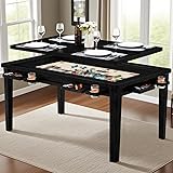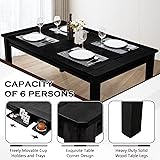 Haddockway 63" ×39“ Board Game Table with Removable Top, Solid Wood Dining/Gaming Table for 4-6 Players with Play Mat, 6 Detachable Cup Holders & 6 Hobby Trays (Black)