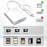 SD Card Reader for iPhone & USBC Device: Denlane upgraded SD card reader has dual connectors (usb c & lightning), for apple iphone 5-14, iphone 15-16, ipad, mac, samsung, dell, lenovo etc.andriod phone, table type c devices. Note: two interface cannot be used simultaneously With Apple MFi Certified: Denlane memory card reader built-in usbc and lightning connector is easily to use, no APP, no network, no driver, no extra power. Just plug and you can transfer photos/files from digital camera memory card or USB compact flash to your iphone anytime, and share your moments with friends at the first time Ideal for Photography Creators: The 5 in 1 Micro SD/SD Card Adapter is design for digital/trail/hunting camera, allowing you to instantly see the best moments of your shots! Supports two-way to stable transfer files/photos/music/video, from SD card to iphone/ipad or from iphone/ipad to memory cards.This is a useful accessories for photographers Plug and Play: Denlane iphone sd micro sd card viewer allows you to view multiple types of SD/TF/SIM cards easily anytime and anywhere. Compatible with SD, SDHC, SDHC, SDXC, Micro SD, Micro SD, Micro SD, Micro SDHC, Micro SDXC card You must have Denlane card reader: Denlane camera adapter with a stable high speed transfer speed, you can transfers your camera's photos and videos to your iPhone/iPad/Mac etc. in seconds. Support FAT32 and exFAT formats, standard photo formats (JPEG & RAW), SD/HD video formats (H.264 and MPEG-4)