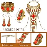 You Will Get: the package comes with 4 pieces of vintage gold red turquoise jewelry in the package, including 1 piece of body chain, 1 piece of western ring, 1 piece of red turquoise bracelet and 1 pair of red turquoise earrings, a reasonable combination can meet your wearing needs for different occasions, also nice for sharing with others Adjustable for Better Fitting: please carefully review the size labels on the jewelry in the picture to ensure that the set is the right size for you before purchasing. the boho statement necklace, red turquoise bracelet and western ring are adjustable, so that you can adjust them to the proper size according to your needs, and the alloy oval resin drop dangle earrings are 2.16 inches in length in size, enough to be noticed by your guests, bringing you a nice wearing experience Boho Themed Jewelry: this western jewelry has vintage gold red looks with many artificial stones set on them, which look elegant and beautiful, can go well with a variety of your clothes, adding more charm to your performance Long Time Application: our bohemian necklace and other jewelry are formed by quality alloys and artificial gems, which are sturdy and reliable and lightweight, can be applied for a long time, bringing you a pleasant wearing experience Broadly Applicable: the western jewelry for women have nice appearances, suitable for dress collocation, or daily parties as casual collocation, making you look more attractive, also suitable for taking photos, making your photos more eye catching and stand out on your social media platform