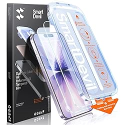 - SmartDevil screen protector is crafted from 9H+ tempered glass and has passed SGS military-grade shatterproof certification. It undergoes 12 rigorous tests, including 220 lbs impact, 8ft drop, 3,000+ drop tests, and 10,000 scratch tests, this is a robust and durable screen protector tailor-made for your iPhone. Whether faced with accidental drops or daily wear, it guarantees the safety of your iPhone, keeping it free from scratches, bumps, and damage. The SmartDevil Dust-Free Box features a revolutionary quick-install design. With innovative automatic alignment, dust removal, and adhesion technology, even beginners can achieve precise application in just two simple steps. Experience an unparalleled smooth installation, thanks to cutting-edge technology and ingenious design. The box comes with an installation kit (dust removal stickers, alcohol wipes, dust cloth) along with an instruction manual, enabling newcomers to achieve bubble-free perfection effortlessly , saving you time and hassle. 0.33mm ultra-thin aerospace-grade glass not only perfectly replicates the touch sensitivity of the bare phone, but also brings silky-smooth and smooth fingertip touch, and zero latency of the game operation. The high-transmittance glass base delivers an ultimate HD visual experience with 8K-level crystal-clear picture quality and a light transmittance exceeding 92%. Crystal clear picture quality for an immersive iPhone experience. The SmartDevil screen protector is equipped with a transparent hydrophobic and oil-resistant layer. Tests show this coating effectively blocks 99.99% of sweat and grease, significantly reducing fingerprint residue. A simple wipe keeps your iPhone looking as good as new. Compatible with 99% of iPhone cases, say goodbye to the traditional “lifting edges” issue with screen protectors. SmartDevil screen protector—With military quality as the cornerstone, it leverages technology and innovation to safeguard your iPhone screen
