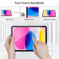 Exclusively for iPad A16 2025 11th/2022 10th Generation: 11-inch 2025 (model: A3354 A3355 A3356)/10.9 10 Gen 2022 (A2696 / A2757 / A2777); Please verify the model number at the back of your iPad before purchase 2 premium screen protectors: 9H hardness & super HD clarity, Ultra thin ; True touch sensitivity; Rounded edge 1 color-matching camera lens protector, providing all-around protection while personalizing your iPad Only take seconds to install; Advanced silicone adhesive, no residue when removing Face ID & Apple Pencil Compatible. Scratch-resistant; Shock-resistant; Oil-resistant