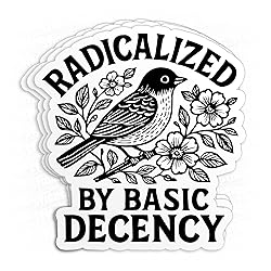 (3Pcs-2") Radicalized by Basic Decency Sticker Protest Liberal Leftist Democracy Human Rights Waterproof Vinyl Sticker Laptop, Water Bottles, Phone Merchandise Decor Decal Gifts for Her Him 2 inches