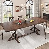 - 94" Farmhouse Dining Table for 5 6 7 9 10 8 People, Rectangular Kitchen Table W/Thickness Waterproof Wood Grain Tabletop,Brown 6FT Large Rustic Dinner Table W/Adjustable Leg for Dining Living Room
