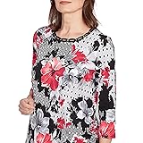 • This diamond patchwork floral top blends charm and style with a detailed knotted crew neckline and three-quarter sleeves. The side tie closure with ruching adds a flattering touch, making it a unique and elegant addition to your wardrobe.
