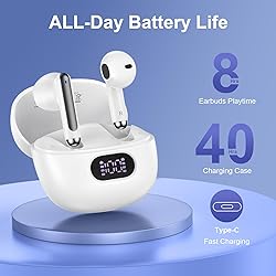 - Bluetooth Headphones Wireless Earbuds 40H Playback LED Power Display Earphones with Wireless Charging Case IPX7 Waterproof in-Ear Ear buds for Google Pixel Android Samsung iPhone iPad Tablet Laptop Computer Sports Special Features Hi-Fi Stereo Sound: The specially designed sound chambers make the bass deeper, punchier and more elastic. Fast Automatic Pairing: Open the earphones charging case they'll automatically connect to the last paired device! LED Power Tracker: Wireless earbuds built-in LED display clearly shows remaining charge (0-100%) 40Hrs Extra-Long Battery Life: Wireless earphones can provide up to 8 hours of music on a single charge. Smart Touch Control: You can touch either earbud to control the phone, such as the music switch, volume adjustment, phone calls, voice assistant, etc. Bluetooth 5.3: The latest Bluetooth version has fast transmission speeds, so you always get a stable connection, even in busy crowds. Wide Comaptibility for iOS / Android / Windows System for Google Pixel 9a 9 Pro XL Fold 8a 8 Pro 7a 7 Pro 6a 6 Pro 5 4a 3XL for Samsung Galaxy S25 S24 S23 S21 S20 Ultra FE S10 S9 S8 for Samsung Galaxy A16 A15 A14 A13 A12 A56 A55 A54 A53 A52 A36 A35 A34 A32 for Samsung Galaxy A26 A25 A24 A23 A06 A05s A04s A03s A02s A51 A21 A11 A10E for iPhone 16 15 14 13 12 11 X XS XR 8 7 6 5 Series for iPad / Mac / Laptop / Computer and more Bluetooth devices.