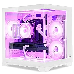 【Ryzen 5 + RX 6500 XT Dominate 1080P Gaming & Streaming】 The perfect balance of power and price. The Ryzen 5 5500 6-Core CPU and Radeon RX 6500 XT 4GB GPU are engineered to crush 1080P gaming. Enjoy buttery-smooth, high-FPS gameplay in popular games while effortlessly handling Discord, streaming, and multitasking. 【32GB high-frequency memory+WiFi 6&Bluetooth+Pre installed Win11 +1TB High-Capacity PCIe Solid-State Drive】One step at a time, rejecting upgrade troubles! 32GB DDR4 3200MHz high-frequency memory, multitasking like a tiger's wings; Supports WiFi 6 wireless and Bluetooth 5.0, with stable and fast connection; Using a 1TB PCIe high-speed solid-state drive, boot up, loading, and transfer are lightning fast. 【7-Fan RGB “Rainbow Storm” Cooling: Cool Looks, Cooler Performance】 With 7 synchronized RGB fans creating an efficient multi-directional airflow, heat is rapidly dissipated to maintain stable performance during extended gaming sessions. The vibrant, customizable “Rainbow Storm” lighting can sync with gameplay, turning your battle station into the dazzling centerpiece of your setup. 【Ready Out of the Box】No Hassle, Just Play: Comes with Windows 11 pre-installed, plus built-in Wi-Fi 6 and Bluetooth 5.0. No assembly or extra parts needed—simply power on, connect, and dive into action. 【Sleek White Chassis with Customizable RGB: Style Meets Personality】Dressed in a clean, all-white design with fully controllable RGB lighting, this PC balances bold style with premium aesthetics. Whether building a dream white-themed battlestation or showcasing it as a statement piece, it reflects your unique gaming taste and lifestyle.