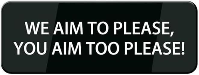 We Aim to Please You Aim Too Please Sign - Black Acrylic Business & Restaurant Signage - for Customer Entry Areas - Humorous Hygiene Instruction, Strong Adhesion 3X9 in