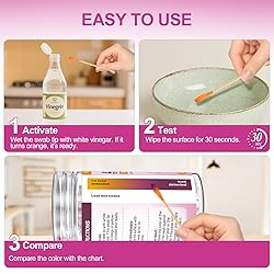 Scientifically Enhanced Lead Testing Formulation for Reliability: Through rigorous experiments, AAwipes has developed an optimized chemical formula that ensures highly consistent and accurate lead detection, backed by extensive laboratory validation Activated with Vinegar for Superior Accuracy: Maximize test precision by moistening the swab in white vinegar. This upgraded activation method significantly enhances reactivity and delivers more dependable results Rapid and Clear Results in Just 30 Seconds: Simply dip the swab in vinegar, swab the test surface for 30 seconds, and observe the color change. Immediate red, purple, or pink indicates lead existing Exceptional Sensitivity with Easy Interpretation: Featuring ultra-high selectivity, our lead test kit outperforms conventional methods. Easily compare results using the provided reference chart—distinct color changes ensure confident and straightforward analysis Versatile Range of Use: AAwipes Lead Testing Swabs are suitable as an at-home lead test kit for dishes and various surfaces, such as paint, thermos cup, pottery, jewelry, bathtub glazes, antiques, plumbing, and more