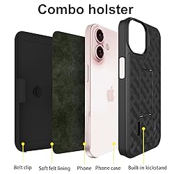 Design: Compatible with iPhone 17(6.3 inches, Released 2025) only. Not for iPhone Air/iPhone 17 Pro/iPhone 17 Pro Max. Not support Magnetic chargers. Maximum Protection: Hard plastic PC. Light and strong. Skidproof texture. Reinforced the four corners. Drop resistance. Reduce the risk of damage. Hard back & removable cover for tough drops, scratches and bumps in outdoor activities and sports Tempered Glass Full Screen Protector: Full Screen Coverage, Case Friendly, Smooth feeling, High Hardness, response and transparency, bubble free, Easy installation Handsfree Kickstand: Watch video without holding. LOCKING SWIVEL BELT CLIP, rotate 180 degrees to offer carrying convenience. Steadily clamp on your belt, bag, pocket and jeans. Reliable Support: Crafted from scratch-resistant materials to keep your phone looking good over time. Designed for durability and style, suitable for daily life, outdoor adventures, and demanding work environments.