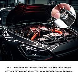 - Specification:Material: Iron, Stainless SteelQuantity: 1 PCSColor: BlackWeight: 0.8 lbBolt Length: 11/ 9/ 8 inchesFeature: Sturdy, Adjustable, RustproofFit Type: Universal FitWhy do you need this adjustable battery hold down bracket?-This battery holder has excellent rust resistance and can adapt to the complex conditions of automotive electrical systems.-The J-bolts closely fit and secure the battery, ensuring a stable electrical connection to the vehicle.-It adapts to different brands and models of car batteries to meet diverse application needs.