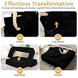 Tabaray 80'' Futon Sofa Bed, King Size Foldable Sleeper Sofa, Corduroy Boneless Loveseat Couch with Chaise Lounge, 3 Pillows, Blanket, Upholstered Sectional Couches for Living Room, Bedroom, Black