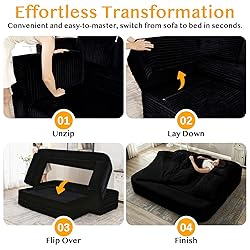 Convertible Sofa Bed: Simply position the chaise lounge and the ingenious sofa side by side and fold the backrest flat to create an 80'' L × 76'' W × 15'' H king-size bed for your home. Even in compact apartments, study rooms, small spaces, guest rooms, studio, offices, and game rooms, it can be accurately adapted with its moderate size, making every corner functional and sophisticated. This loveseat combines form and function to maximize your home's flexibility and complement your modern decor Independent Recliner: This innovative sofa features a modular independent recliner that blends practicality with flexibility. It can not only serve as additional seats to easily meet daily leisure needs, but also seamlessly connect with the loveseat to quickly expand into additional sleeping space, providing you with more comfortable options. Whether you're seeking quiet time or hosting guests, this corduroy sofa adapts to any situation, making your space more efficient and life more convenient Multifunctional Blanket: This floor sofa features a convertible blanket that easily switches between 2 modes. Simply zip it up, and it transforms into a fluffy, cozy cushion that adds a stylish touch to any space. Unzip and unfold it to reveal a warm blanket, perfect for chilly nights. It offers both comfort and convenience. Whether you're relaxing alone or entertaining guests, this foam sofa with a versatile blanket will satisfy your needs and make every moment more comfortable and enjoyable Luxurious Corduroy Fabric: This cozy sofa is crafted with soft and breathable corduroy fabric for superior coziness and durability. When you touch it, you will feel the soft texture of corduroy--soft yet lightweight; when lying on it, it gently wraps around your skin, and you won’t feel sticky or stuffy even after sitting for a long time. This fabric sofa is not only soft to the touch, but also easy to care for and resistant to fading, ensuring it remains as bright as new even after frequent use No Assembly: This fluffy foldable sofa bed is designed to be easy to use and does not require any complicated assembly process. Simply place it in your desired spot, unpack, and shake the cushions to restore its shape, providing instant comfort. The high-density foam filling ensures excellent support and elasticity, preventing deformation or collapse, even with long-term use. This plush sofa is perfect for daily relaxation, TV time, or hosting guests, giving you the freedom to enjoy your space.